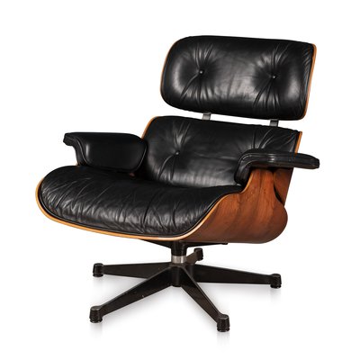 Black Leather Lounge Chair By Charles Ray Eames For Vitra 1980s For Sale At Pamono